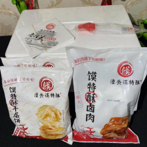 卤肉肉夹馍全自动给袋式包装机采用机械式传动、袋宽可自动调整、自动润滑系统等,由给袋式包装机、螺旋单斗提升机、生鲜秤组成,包装速度可达40包/分